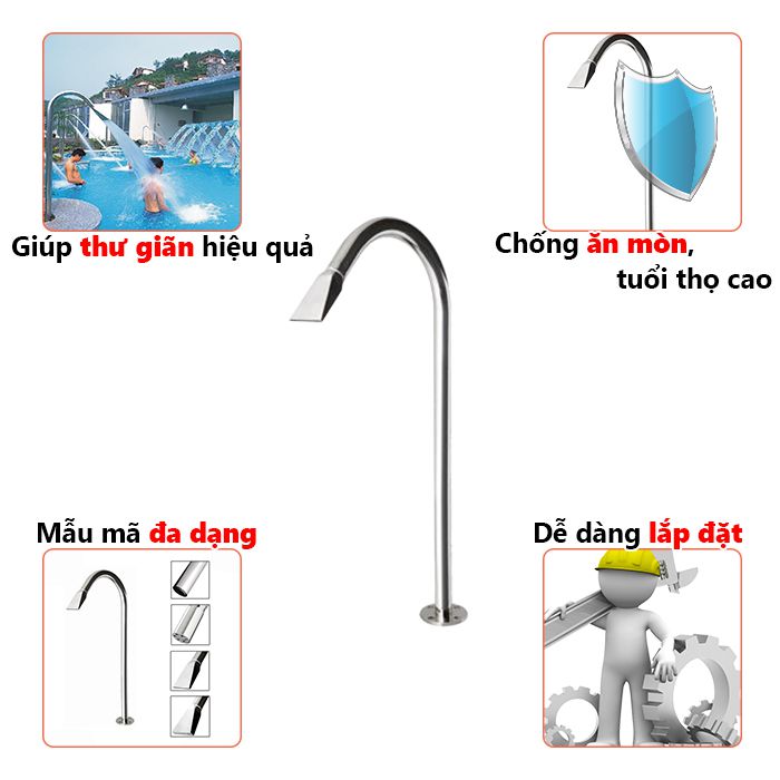 Cây phun massage cực mạnh làm nước phun tạo lực đẩy khá mạnh giúp massage toàn bộ phần đầu, cổ và lưng của bạn xua tan hết mệt mỏi sau một ngày làm việc. Vì thế đây là thiết bị vô cùng tiện ích với mỗi bể bơi.