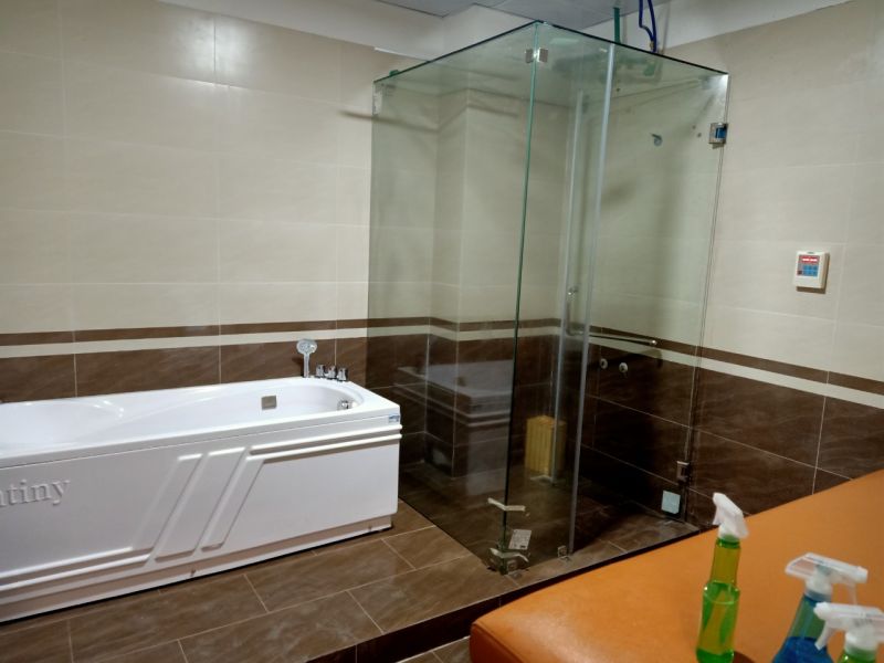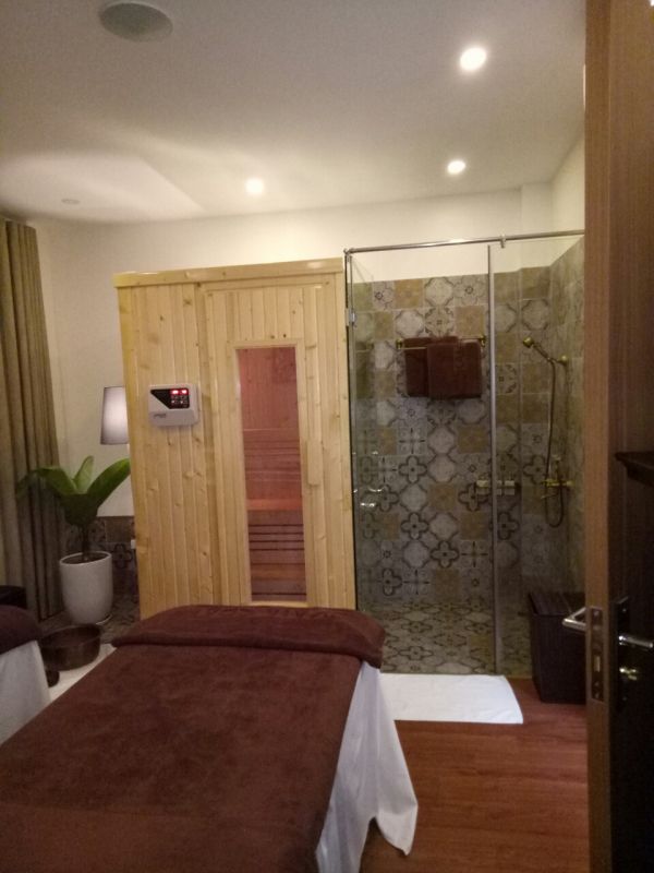 Phòng xông hơi khô ướt cho massage Food & Body ở Lào Cai. Kích thước phòng xông hơi khô 1200*1200*2100 kích thước phòng xông hơi ướt 1200*1200*2100mm. tổng chi phí lắp đặt cho 2 phòng xông hơi này là 45.600.000 đồng.