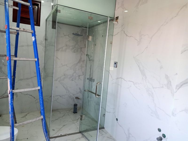 - Phần thi công lắp đặt cabin kính cường lực từ 10 mm đến 12mm cho phòng xông hơi ướt có giá là từ 650.000 đồng đến 800.000 đồng một mét vuông kính. Bộ phụ kiện cabin kính cường lực thường gồm có bộ bản lề. tay nắm, gioăng từ, kẹp định vị, hộp inox.... có giá khoảng từ 2.700.000 đồng đến 6.000.000 đồng một bộ tùy theo loại phụ kiện