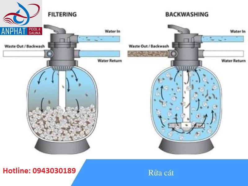 - Sau khi bổ sung cát mới vào bình, cần tiến hành rửa cát để loại bỏ các chất bẩn bám trong cát bằng cách khởi động bộ lọc, thiết lập chế độ “rửa trôi” nếu là van đa cổng.