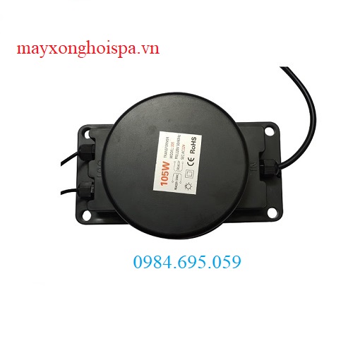 Biến thế đèn bể bơi 105w - 300w với vỏ ngoài bằng nhựa cứng để bảo vệ cuộn hút bên trong. Cuộn hút bên trong bằng đồng, dùng để biến đổi nguồn điện từ 220V sang 12V. Biến thế đạt chất lượng tiêu chuẩn VDE, UL, CE, ISO 9000. Bên trong động cơ có gắn khiên từ tính. Bên ngoài có 4 lỗ nhỏ tiện cho việc cố định chắc chắn sản phẩm.