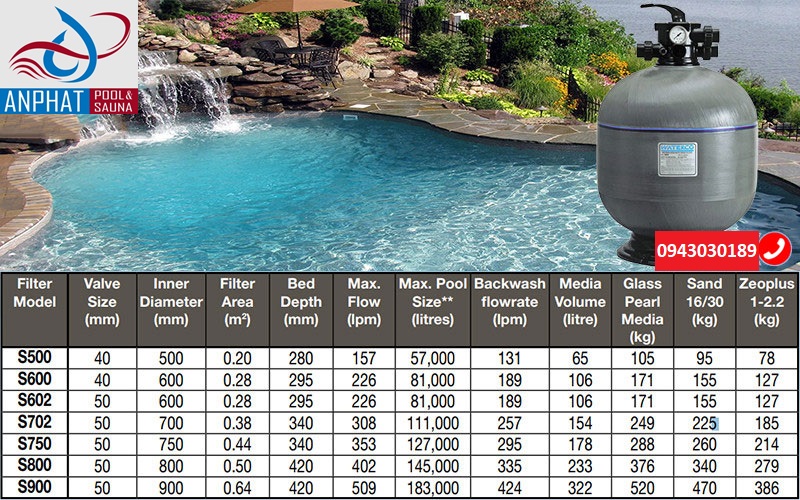 Bình lọc cát bể bơi Waterco đến từ Ustralia, được nghiên cứu và ứng dụng công nghệ tiên tiến hàng đầu trên thế giới. Ưu điểm vượt trội của bình lọc cát bể bơi Waterco S900 là bộ lọc sâu với kết cấu bộ lọc rất đặc biệt, nước được đi qua các lớp cát thuỷ tinh, cát thạch anh và màng lọc cao cấp, đem đến hiệu quả lọc sạch vi khuẩn, rêu tảo trong nước lên tới 99%.