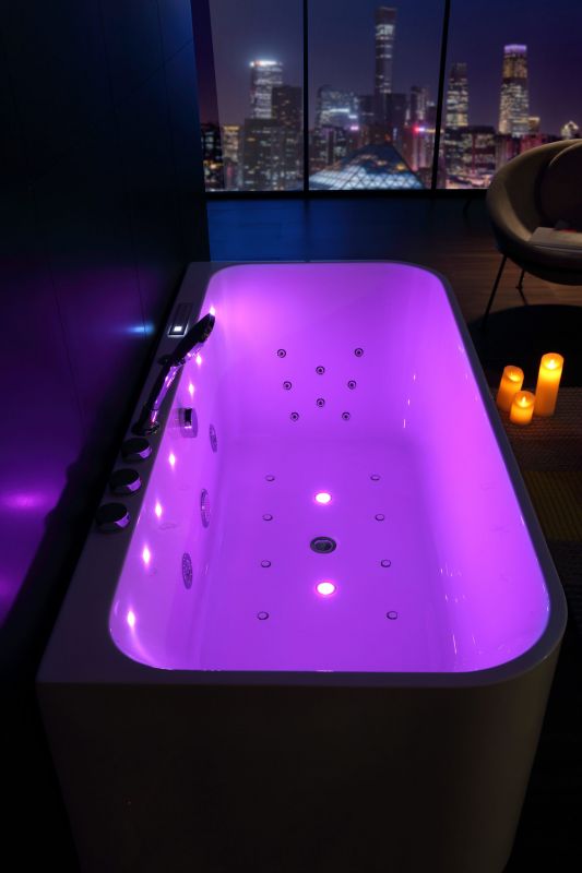 - Phụ kiện: Bơm 1HP. máy bơm massage 300W, sục khí 10 cái, 2 cái có ánh sáng, Đèn Led 7 màu, Bộ sen vòi chia nước bằng đồng mạ Crom cao cấp. Máy sưởi 1,5kw. :