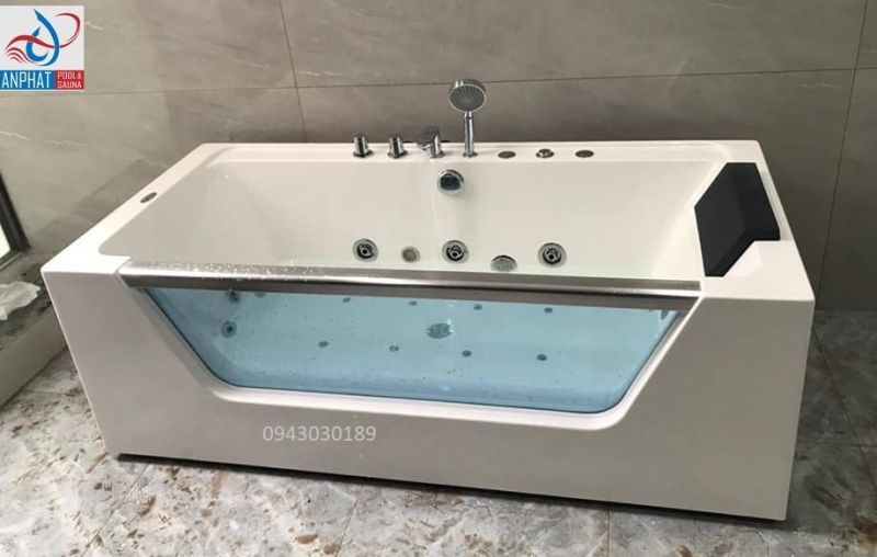 Phụ kiện: 6 đầu sục massage, 8 đầu sục khí, 01 đèn Led, 01 bộ kiện xông điều chỉnh tốc độ massage, tốc độ sục khí, sen tắm...
