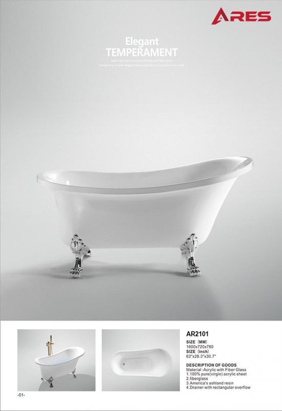 Bồn tắm ngâm nhập khẩu ARES AR2101 với thiết kế chân rồng cao cấp, sang trọng nâng tầm không gian sống của gia đình bạn. Được nhập khẩu nguyên chiếc từ Trung Quốc, trên dây chuyền sản xuất hiện đại.