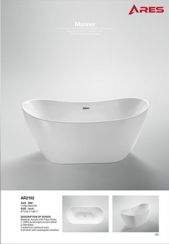 Bồn tắm ngâm nhập khẩu ARES AR2102 là mẫu bồn tắm ARES được nhập khẩu chính hãng từ nhà máy chuyên sản xuất bồn tắm hàng đầu thế giới với tiêu chuẩn xuất đi châu Âu và Mỹ. Bồn tắm ARES được chúng tôi nhập khẩu và phân phối tại thị trường Việt Nam với nhiều kiểu dáng mẫu mã khác nhau.