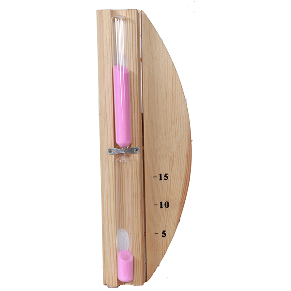Đồng hồ cát dùng cho phòng xông hơi khô được làm từ gỗ thông chịu được nhiệt độ cao. Sử dụng đồng hồ cát 1 chu kỳ là 15 phút, trên đồng hồ cát có đánh sô phút giúp cho người xông hơi có thể biết được mình xông hơi trong bao lâu rồi.