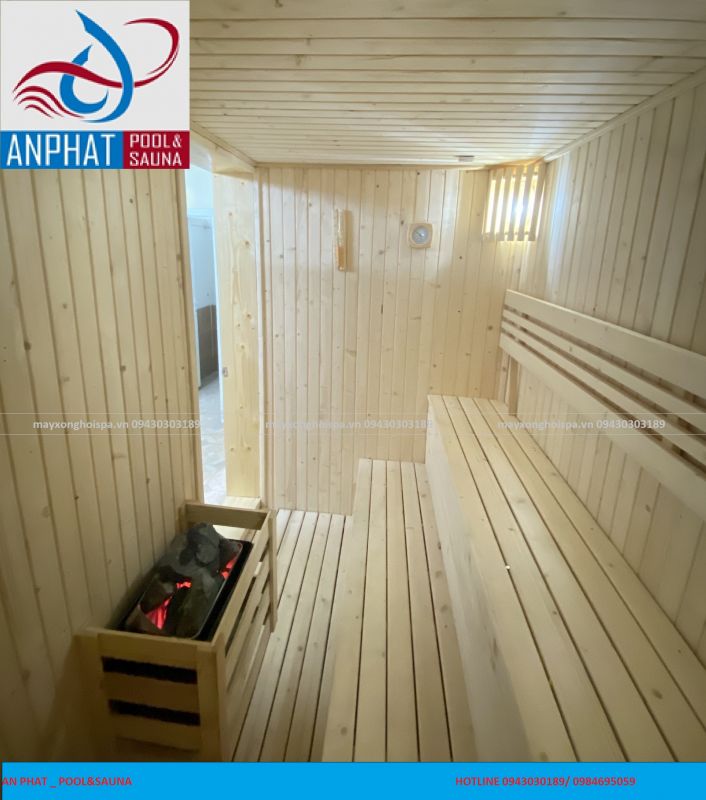 - Phụ kiện đi kèm: Đá sauna, xô gáo gỗ, Đồng hồ cát, ẩm kế, đèn chống nổ
